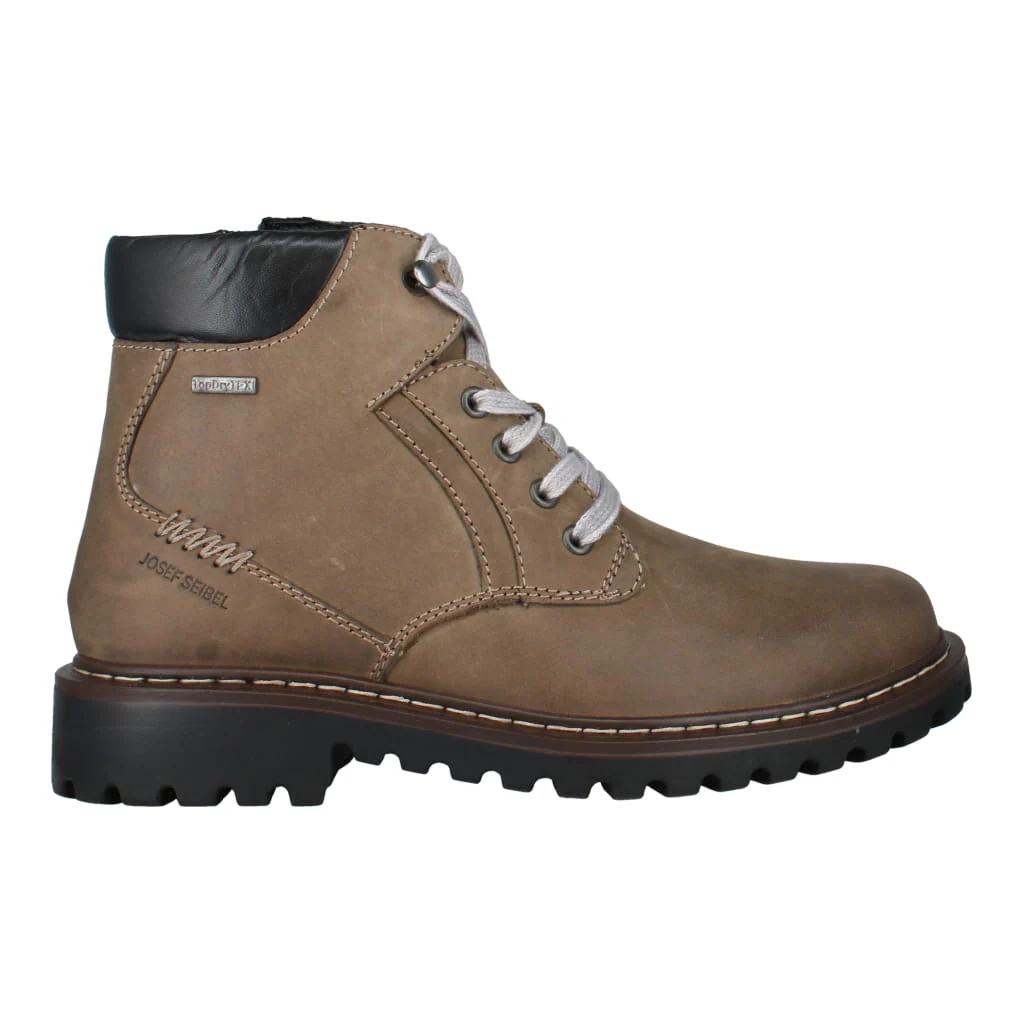 JOSEF SEIBEL Chance 39 is a rugged men's lace-up boot with a modern rubber sole unit for good traction and grip underfoot. Finished with a waxed leather upper and Top-Dry Tex membrane you'll never be caught out again. Dual fastening lace and side zip, as well as velour lining, will keep your feet secure and warm, but that's not it! Contrasting lace and stitch detail give this men's winter boot an added edge.