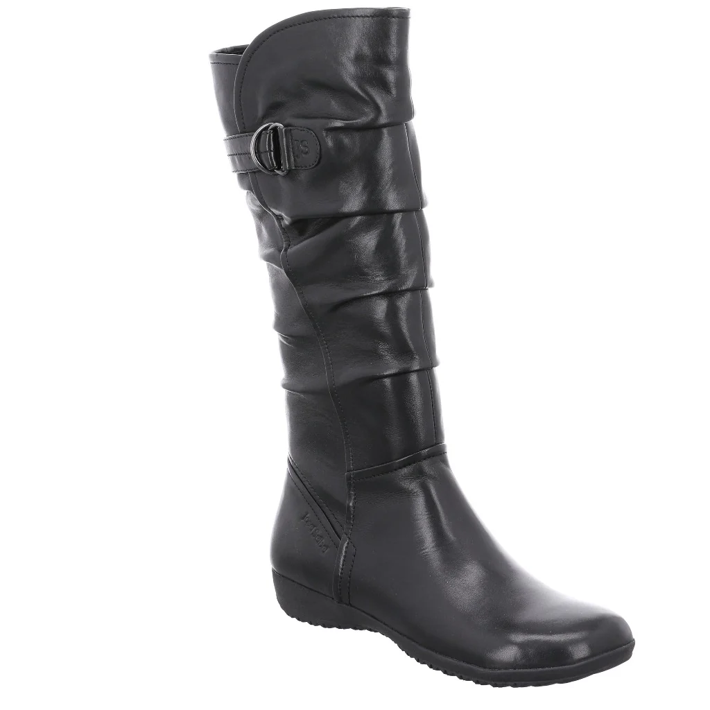 JOSEF SEIBEL Naly 23. Fashioned slouched boot, an outfit-maker for leggings and jeans, shirts and dresses - as versatile as it is on-trend. Ladies long leather boot with a warm velour lining. Featuring an elastic strap around the calf and buckle detailing. Naly 23 has an inside zip and sits atop a hardwearing and lightweight sole. For all-day warmth and comfort and endless feminine style look no further.
