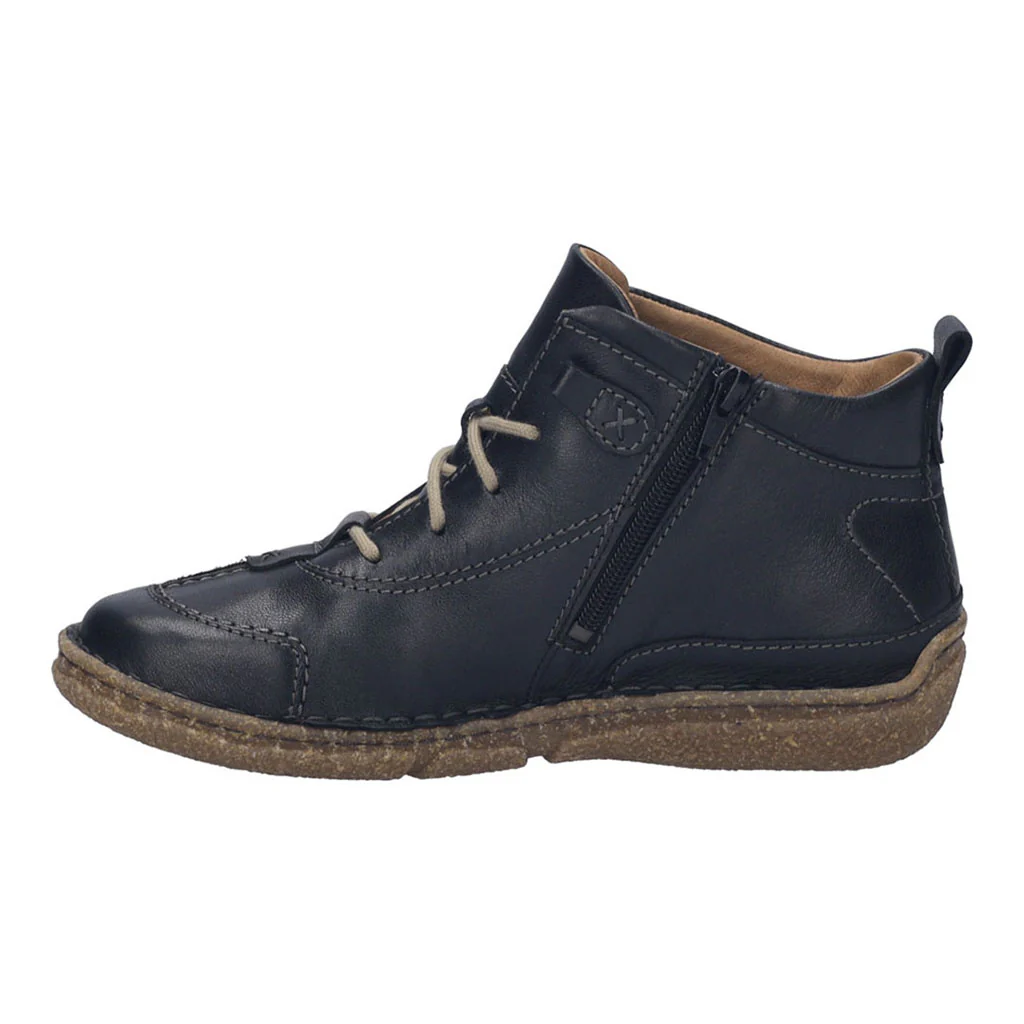 JOSEF SEIBEL Neele 52. A feminine leather ankle boot with raised, handstitched pattern. Soft removable footbed and padded tongue and ankle for comfort. Side zip for easy wear. Lightweight and flexible sole that offers durability too.