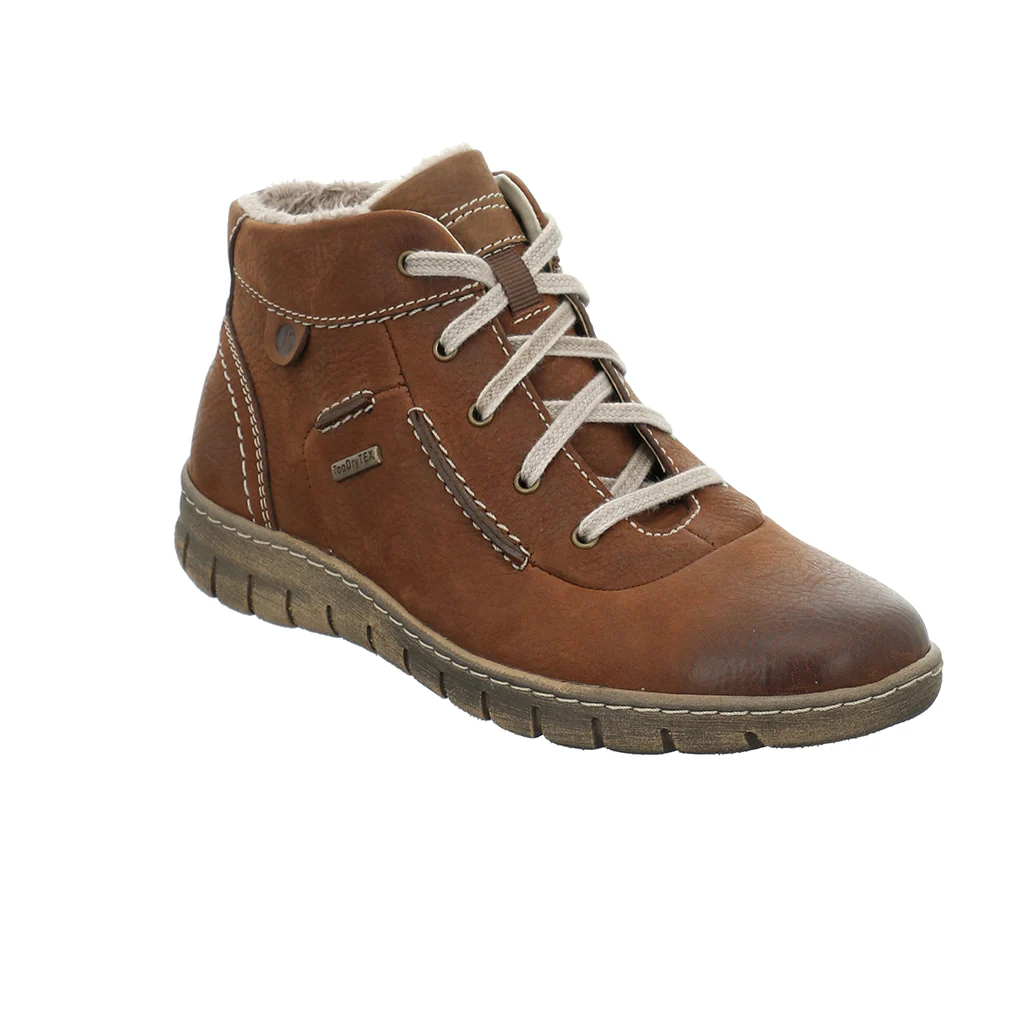 Experience all-day comfort and protection with the JOSEF SEIBEL Steffi 53 ladies ankle boot. Featuring a Top-Dry Tex membrane, to keep your feet dry, while the cosy velour lining ensures warmth. Its durable sole offers reliable support, making it the perfect choice for staying comfortable and shielded from the weather wherever you go.