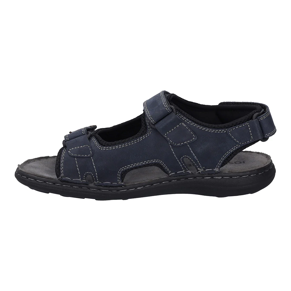 A men's casual summer sandal with three adjustable straps for a tailored fit. Crafted using soft leathers with leather and textile linings. Sitting atop a hardwearing and flexible PU sole unit for all-day comfort and support.
