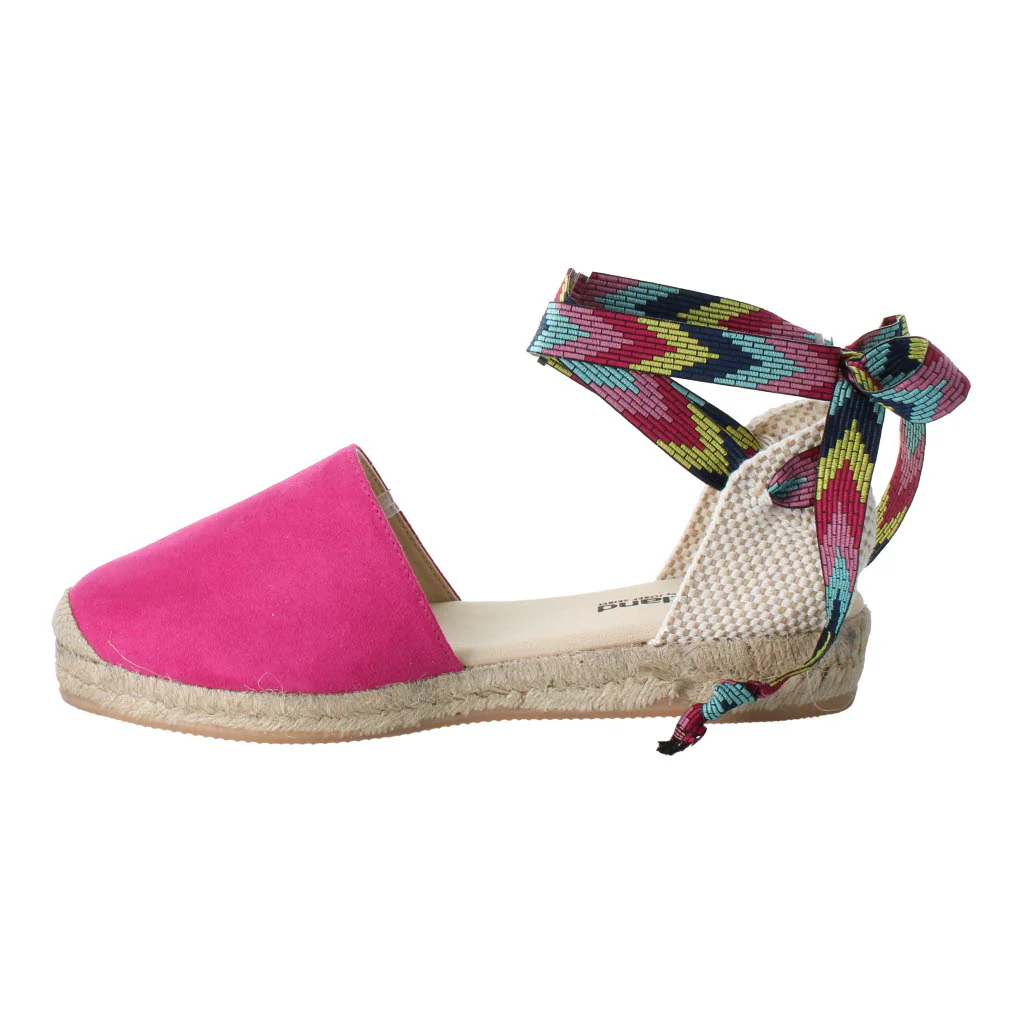Avery 02. A fresh take on comfortable footwear, these mid-heel sandals combine an authentic espadrille aesthetic with a vibrant canvas upper and complimentary Aztec ankle strap. Vegan friendly.