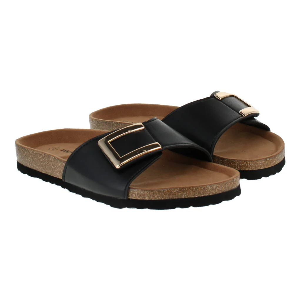 Emma 03. Glide in comfort and style with our vegan-friendly slip-on slider! These sliders are made with a smooth synthetic textile for maximum comfort, all while being fashionably chic. Vegan friendly.