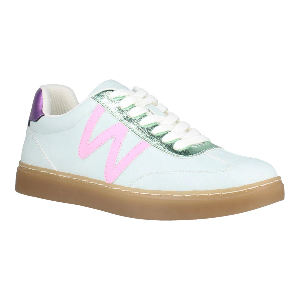 WESTLAND Kira 01: women’s lace-up trainer with iconic branding, twin cupsole design, contrasting heel detail and flat sole for everyday casual style. Vegan-friendly.